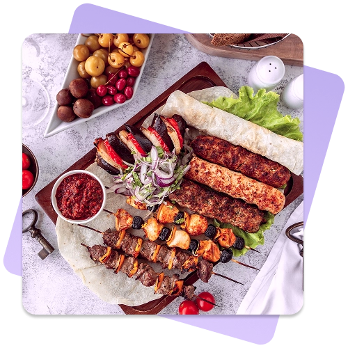 - Succulent grilled kebabs, shawarma platters, and mezze assortments